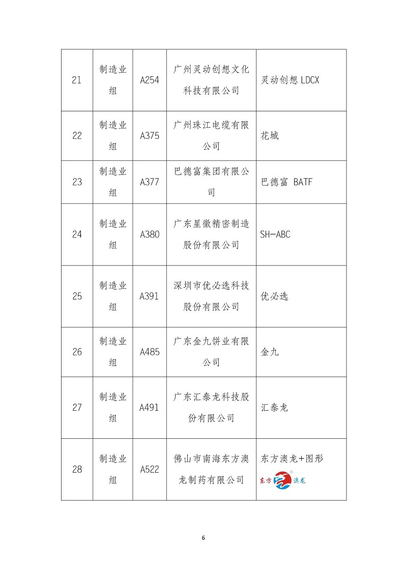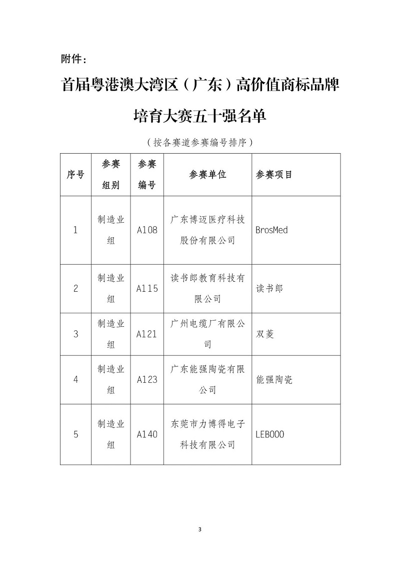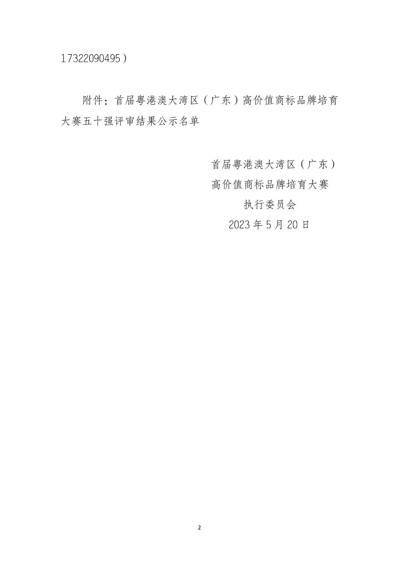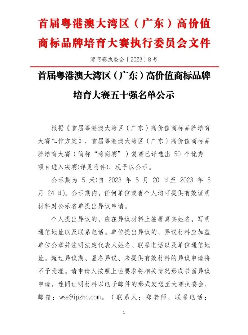 首届粤港澳大湾区(广东)高价值商标品牌培育大赛五十强名单公示