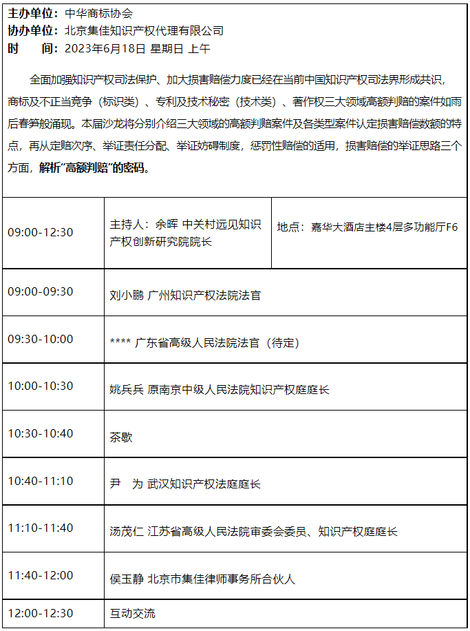 第17届中国商标年会将于6月17日至19日在第十三届中国国际商标品牌节期间举行,本届年会共有27个分论坛或沙龙,本公众号将作一一推介。