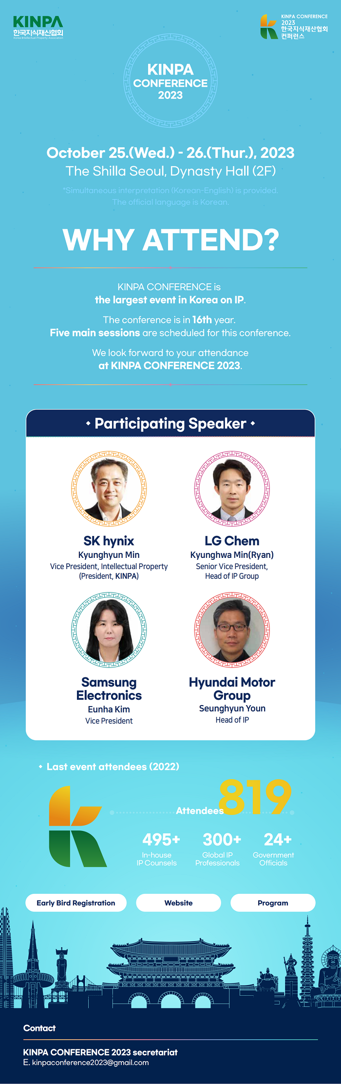 2023韩国知识产权协会(KINPA)年会将在韩国首尔举办