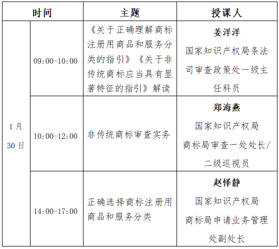 为加强会员对两个指引文件的认识,提高商标注册申请有关商品与服务类别的选择、非传统商标注册审查要点的理解,我会定于1月30日举办商标注册申请指引解读培训班(线上、线下相结合)。培训相关安排如下: