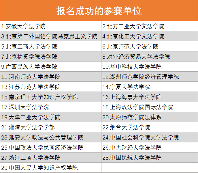 按照本届辩论赛通知要求,确认报名成功的参赛单位共29个(排名不分先后),现公示如下: