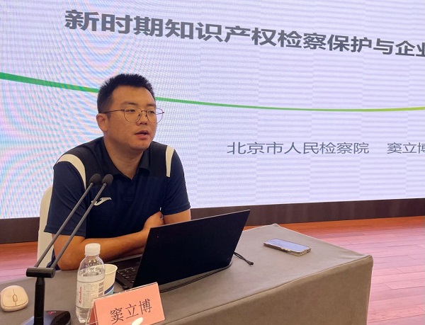 窦立博以“新时期知识产权检察保护与企业权益保障”为题授课