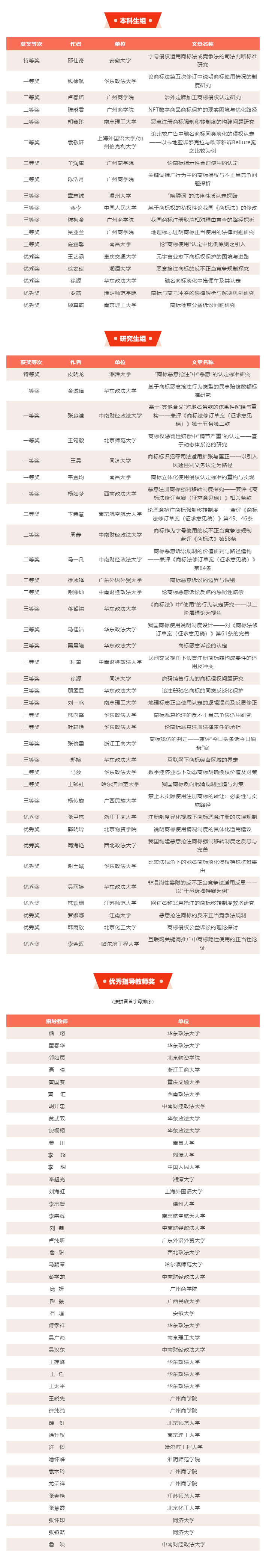 (注:由于时间原因,我会将不再组织颁奖仪式,本周起将陆续寄送获奖证书并通过电子邮件发送“威科先行法律信息库专业版+知识产权模块”ID 账户信息,请各位获奖师生注意查收!拟选登于《中华商标》杂志或微信公众号的获奖征文,将由《中华商标》杂志社编辑另行联系。)