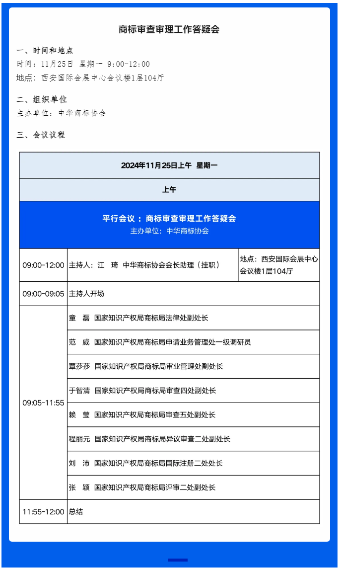 2024中国商标年会 | 会议推介十八:商标审查审理工作答疑会