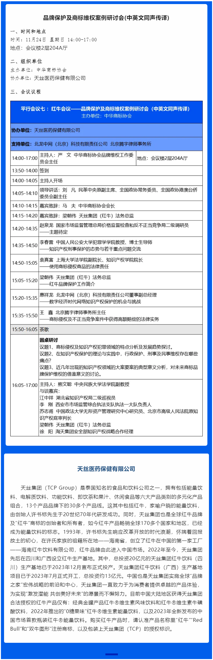 2024中国商标年会 | 会议推介十九:品牌保护及商标维权案例研讨会(中英文同声传译)
