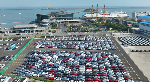 图为2024年10月31日,江苏连云港港,大批国产车辆集结码头等待出口海外。耿玉和 摄(图片来源:人民图片)