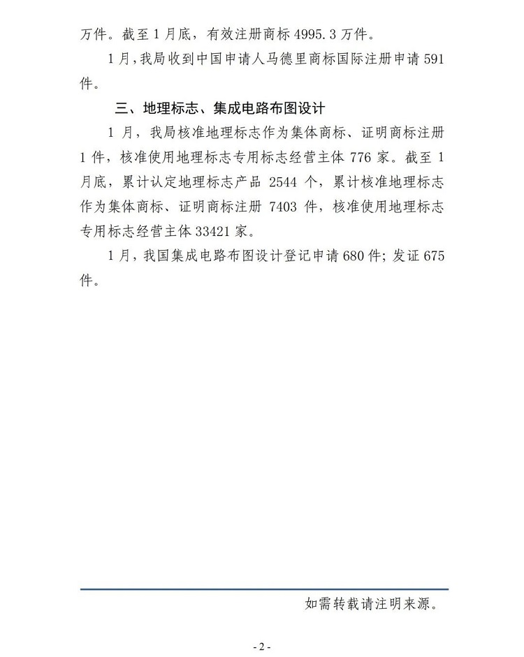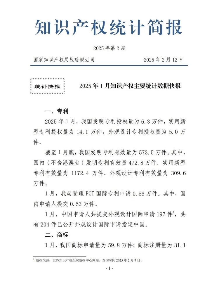2025年1月知识产权主要统计数据快报