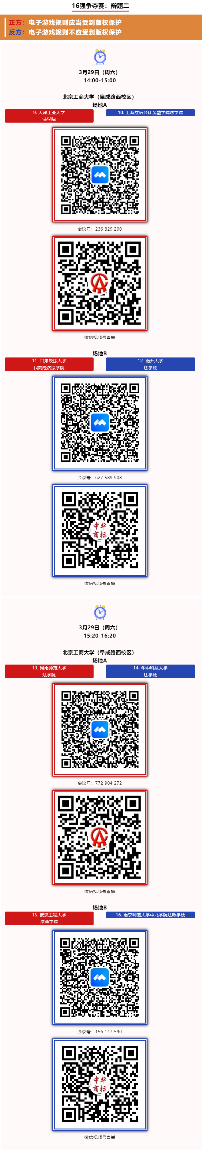 比赛将开放现场观赛并在腾讯会议和微信视频号进行直播,诚邀社会各界知识产权人士广泛关注,共同见证大赛的盛况!