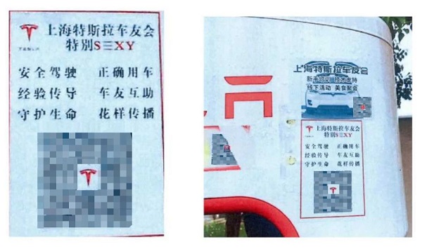 在特斯拉充电桩上张贴的宣传单