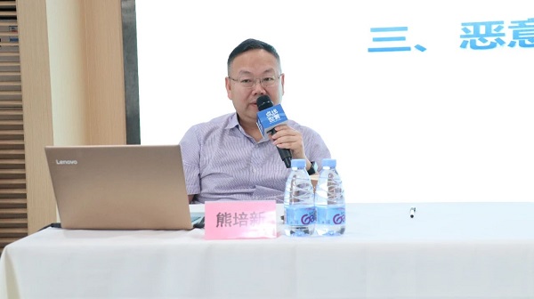 熊培新主要就恶意注册一般审查程序、十种恶意注册的类型、避免被认定恶意注册的要点、规制恶意注册的趋势和展望等内容,与学员进行了分享和答疑。对于恶意注册规制误伤大企业商标布局需求的问题,他强调,商标恶意注册的认定会充分考量企业正常合理的申请需求。新一轮商标法修改稿中也增加了强制移转制度、提高违法成本等条款,不断优化制度设计。期待新法规新制度的落地实施,为商标合法权益的保护提供更为完善的法律保障。