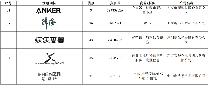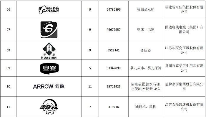 下列商标品牌经公示无异议,通过AAA级知名商标品牌评价,授予AAA级知名商标品牌证书: