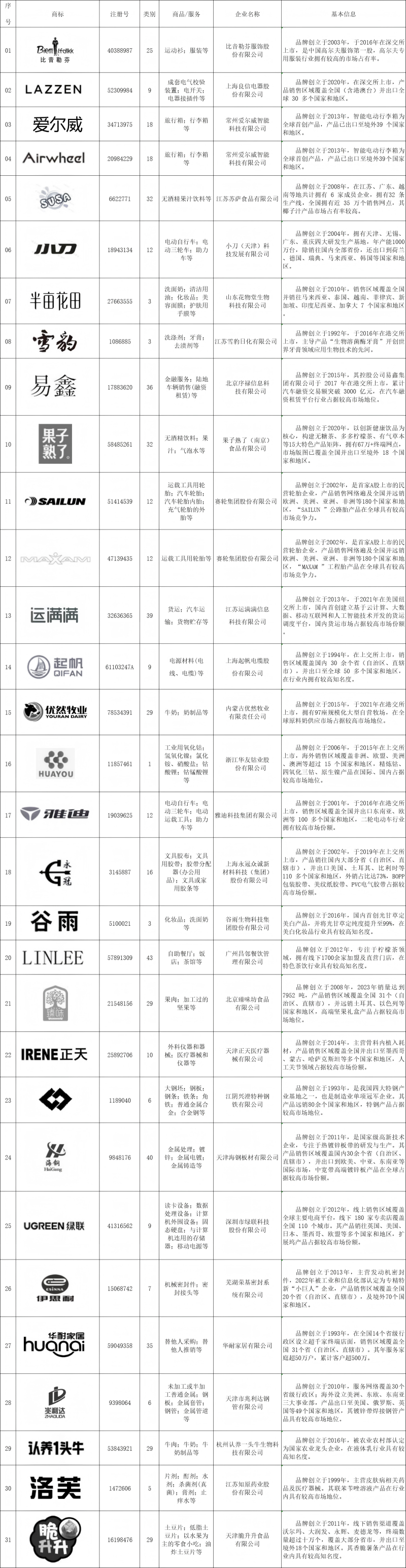 为推动商标品牌战略实施,助力中国品牌全球推广,依据《知名商标品牌评价规范》(T/CNTA 002-2025),经第三方机构评价、中华商标协会知名商标品牌工作委员会专家评审,以下商标品牌符合规范要求,通过AAA知名商标品牌评价,现予公示(以参评申请时间先后顺序排列):