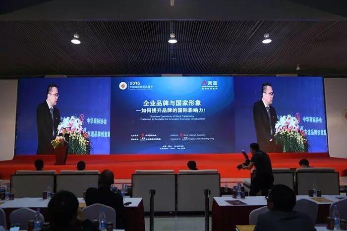 2016年10月28日下午,由东道品牌创意集团承办的本届商标品牌节的重磅论坛“企业品牌与国家形象——如何提升品牌的国际影响力”论坛在昆山国际会展中心举办。国家工商总局商标局副局长林军强到会致辞。东道品牌创意集团董事长解建军、西泠印社集团董事长钱伯皓、苏宁控股集团品牌总监陈建光、齐心集团品牌总监杨俊、汉腾汽车品牌公关部部长贾永宁等知名品牌企业的负责人汇聚一堂,分享了品牌建设经验,为中国企业的品牌打造献计献策。中华商标协会秘书长王培章主持了本次论坛。