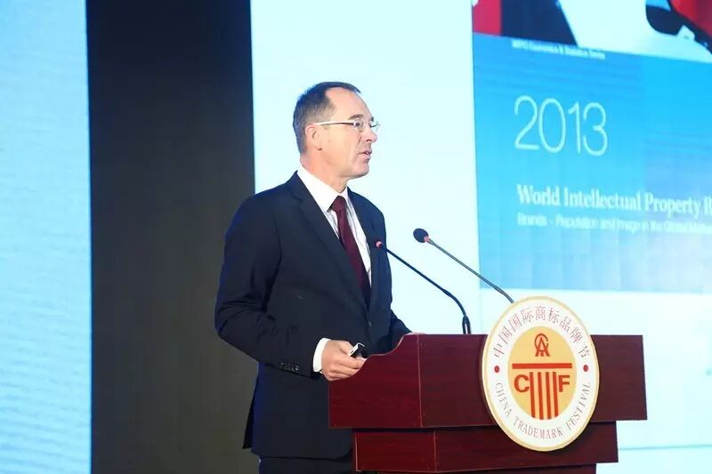 △ 世界知识产权组织马德里注册部主任马克斯•侯波格以《论商标对经济的影响》为题发表演讲