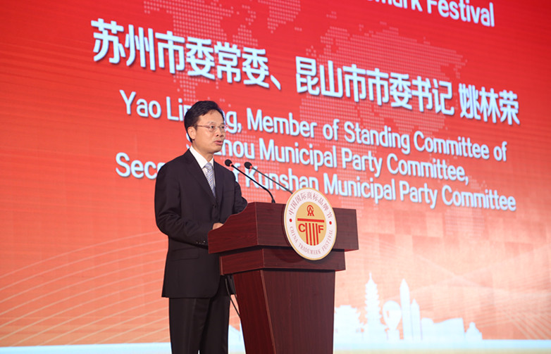 姚林荣首先对出席本届商标节开幕式的嘉宾表示欢迎,他说一座城市唯有坚持创新驱动才能永续发展,唯有坚持品牌引领,才能立于不败之地。多年来昆山高度重视知识产权的保护和自主品牌的打造。积极引导企业开展商标注册和品牌培育。目前昆山市有效注册商标22456万件,其中驰名商标18件,著名商标64件,知名商标95件。中国国际商标品牌节是国内商标品牌领域层次最高、内容最丰富、专业性最强、权威度最高的盛会。承办2016中国国际商标品牌节,有利于昆山进一步扩大对外开放,促进经贸交流,加快转型发展,进一步打造昆山制造的金字招牌,我们有信心在国家工商行政管理总局和中华商标协会的领导与支持下,把2016年中国国际商标品牌节举办成为一届安全、精彩、圆满的商标品牌盛会。