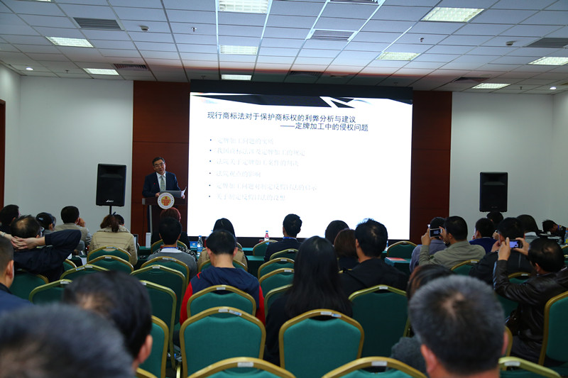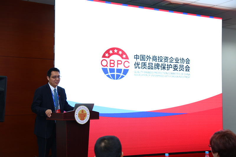 中国外商投资企业协会优质品牌保护委员会法律委员会副主席于帮请以《涉外定牌加工行为商标性使用,如何正本清源》为题发表演讲
