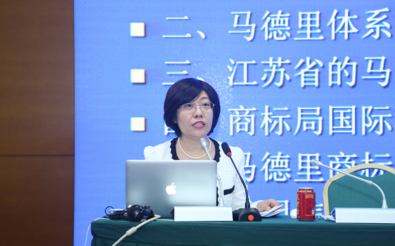 国家工商行政管理总局商标局国际注册处副处长吴亚丽作了题为“马德里体系中国的最新发展”。围绕“新商标法的修订对马德里国际商标注册的影响”、“马德里体系在中国的发展”、“江苏省的马德里商标国际注册情况”、“马德里商标国际注册便利化改革的新措施”等问题作了详细的阐述。