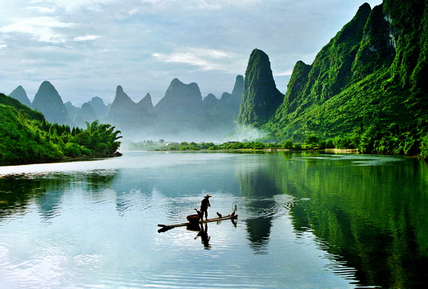 江作青罗带,山如碧玉簪。洞穴幽且深,处处呈奇观。桂林此三绝,足供一生看。