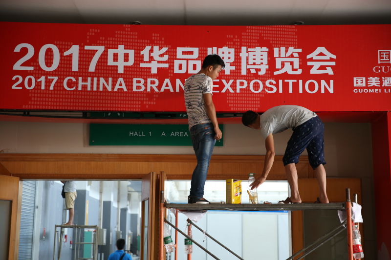 2017年8月31日,桂林国际会展中心,工作人员正在布置会场。