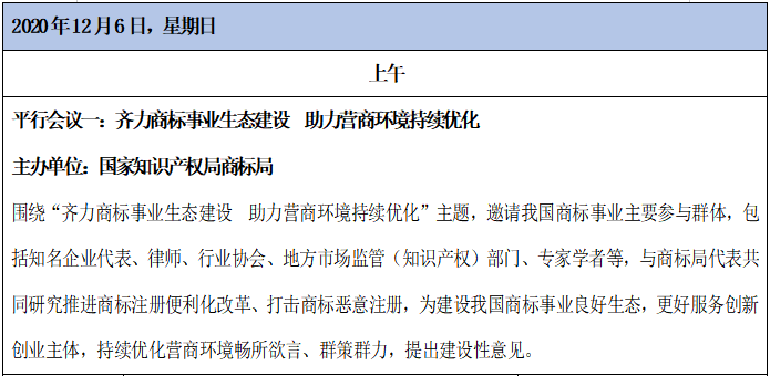 2020中国商标年会分论坛丨“齐力商标事业生态建设 助力营商环境持续优化”论坛议程