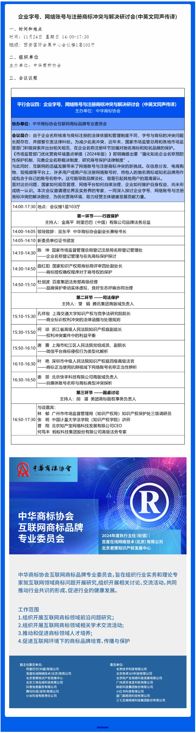 本届中国商标年会包括主论坛“第九届中国商标品牌经济主题会议”和“商标行政保护局长会议”“商标典型案例评析会议”“国际商标法律动态研讨会”等22场平行会议,内容务实多元、规格高端权威。