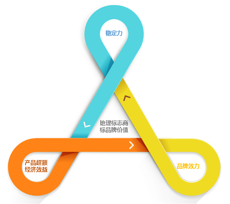 在地理标志商标品牌价值的测算过程中,主要有以下3个关键层面的衡量因素:地理标志商标品牌产品超额经济效益、地理标志商标品牌效力、地理标志商标品牌价值稳定力。