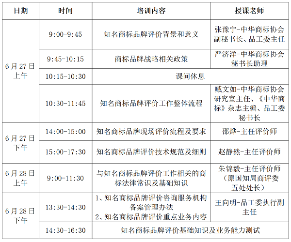 本次培训分为标准解读、理论培训、案例讲解、测试等几个环节进行。培训费用3800元/人,中华商标协会会员单位可享受8折优惠(3040元/人),培训费用包含培训授课、能力测试、教材资料、证书(制作、邮寄)、午餐等费用,培训期间交通住宿自理。