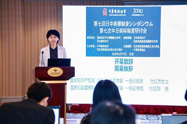 6月19日,由国家知识产权局国际合作司和日本特许厅共同指导、中华商标协会与日本贸易振兴机构北京代表处共同主办的“第七次中日商标制度研讨会”在京成功举办。国家知识产权局商标局党委常委、一级巡视员杜红雨,中华商标协会会长马夫、日本特许厅审查业务部商标课课长根岸克弘、日本贸易振兴机构北京代表处知识产权部部长太田良隆出席研讨会并致辞。国家知识产权局商标局审查一处处长、二级巡视员郑海燕,国家知识产权局商标局审查业务管理处副处长覃莎莎、北京三友知识产权代理有限公司商标代理人谭乔莎、日本特许厅总务部国际协力课商标政策系长大岩优士、日本特许厅审查业务部商标课商标审查基准室室长庄司美和分别就中日两国商标制度最新动向、非传统商标审查实务、有关商品质量误认的商标审查等议题进行分享并答疑。