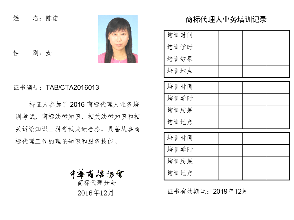 首页 > 代理分会 > 合格证书查询 > 2016年商标代理人业务培训考试合格证书 > 北京博瑞方舟知识产权代理有限公司
