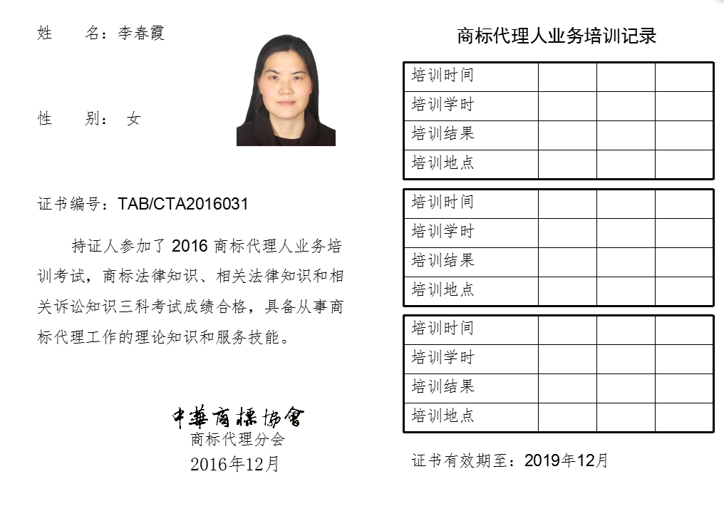 首页 > 代理分会 > 合格证书查询 > 2016年商标代理人业务培训考试合格证书 > 北京海虹嘉诚知识产权代理有限公司