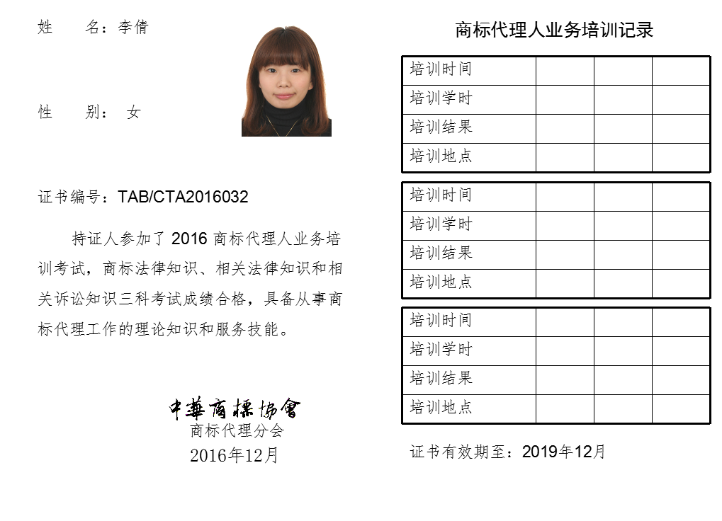 首页 > 代理分会 > 合格证书查询 > 2016年商标代理人业务培训考试合格证书 > 北京厚德致远知识产权代理有限责任公司