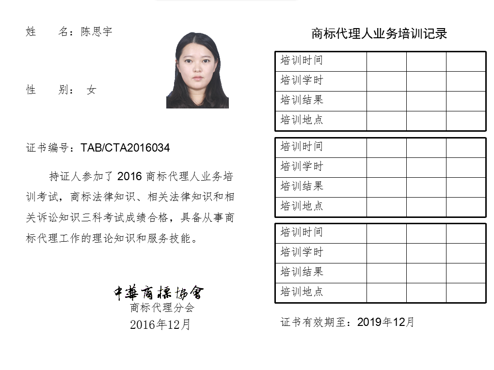 首页 > 代理分会 > 合格证书查询 > 2016年商标代理人业务培训考试合格证书 > 北京华冠知识产权代理有限公司