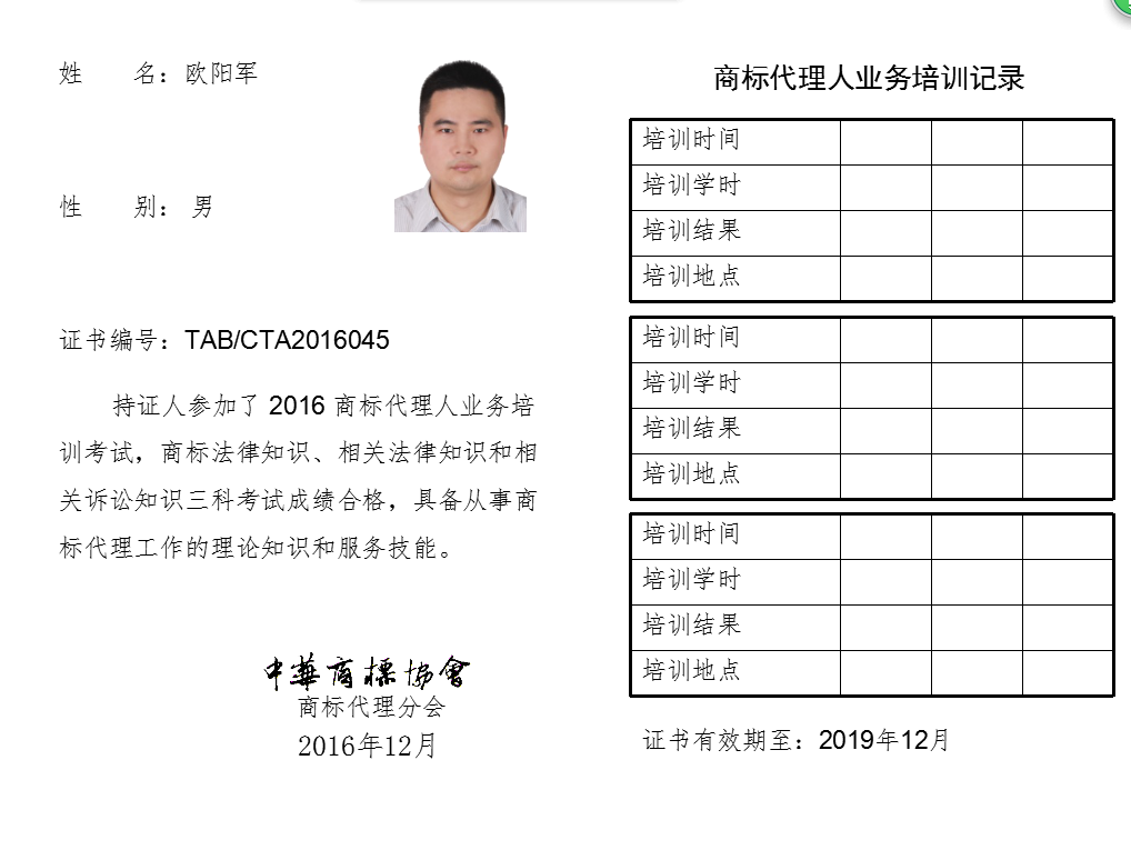 首页 > 代理分会 > 合格证书查询 > 2016年商标代理人业务培训考试合格证书 > 北京集佳知识产权代理有限公司