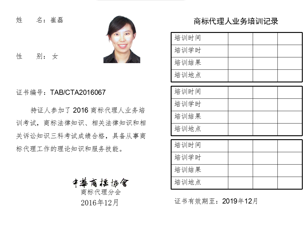 首页 > 代理分会 > 合格证书查询 > 2016年商标代理人业务培训考试合格证书 > 北京捷鼎知识产权代理有限责任公司