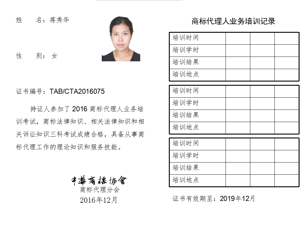 首页 > 代理分会 > 合格证书查询 > 2016年商标代理人业务培训考试合格证书 > 北京康信知识产权代理有限责任公司