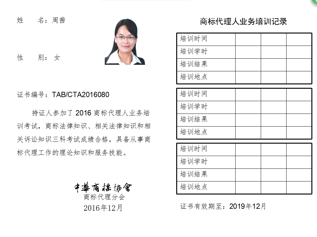 首页 > 代理分会 > 合格证书查询 > 2016年商标代理人业务培训考试合格证书 > 北京理则仁知识产权代理有限公司
