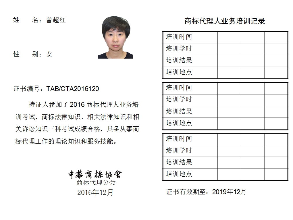 首页 > 代理分会 > 合格证书查询 > 2016年商标代理人业务培训考试合格证书 > 北京万慧达知识产权代理有限公司