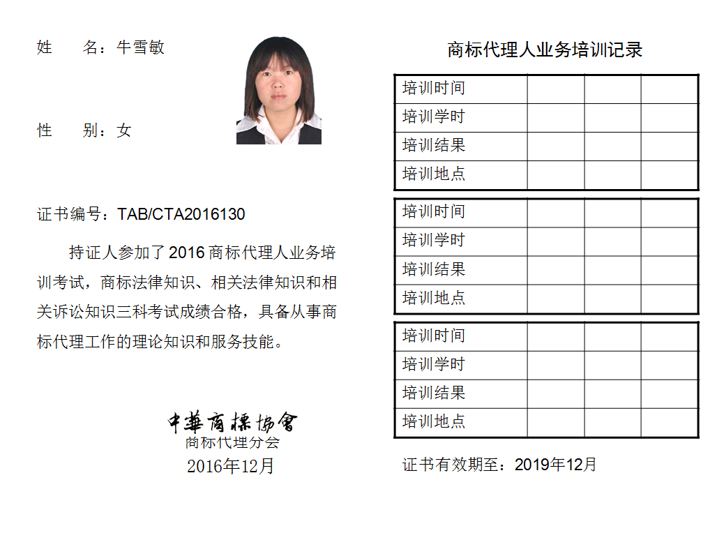 首页 > 代理分会 > 合格证书查询 > 2016年商标代理人业务培训考试合格证书 > 北京万慧达知识产权代理有限公司