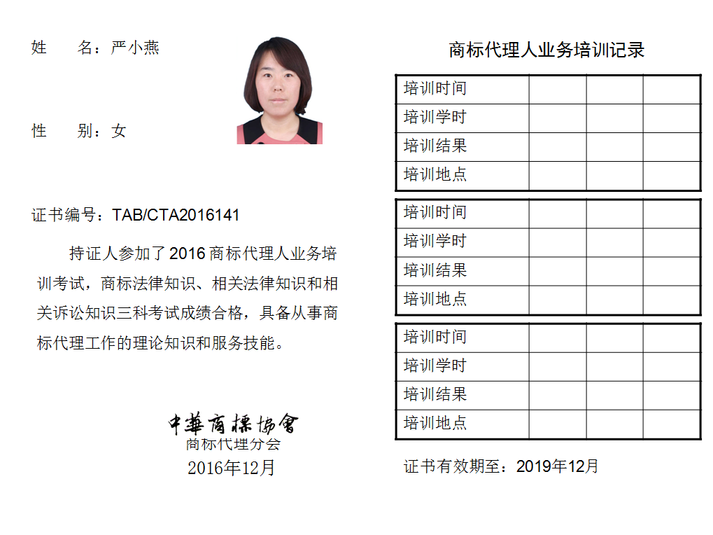首页 > 代理分会 > 合格证书查询 > 2016年商标代理人业务培训考试合格证书 > 北京英特普罗知识产权代理有限公司
