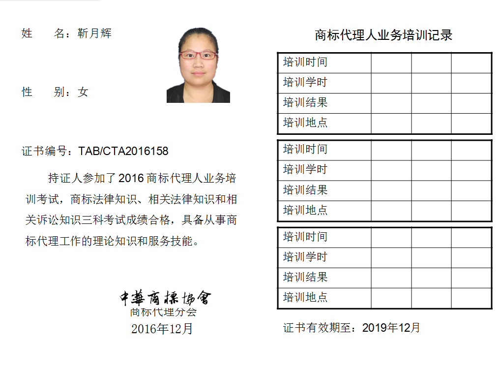 首页 > 代理分会 > 合格证书查询 > 2016年商标代理人业务培训考试合格证书 > 北京中誉威圣知识产权服务中心(普通合伙)