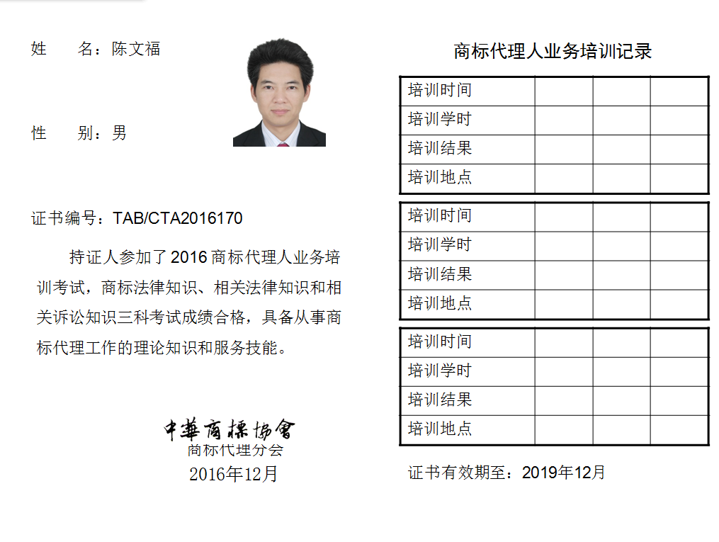 首页 > 代理分会 > 合格证书查询 > 2016年商标代理人业务培训考试合格证书 > 广东慧道知识产权事务所有限公司