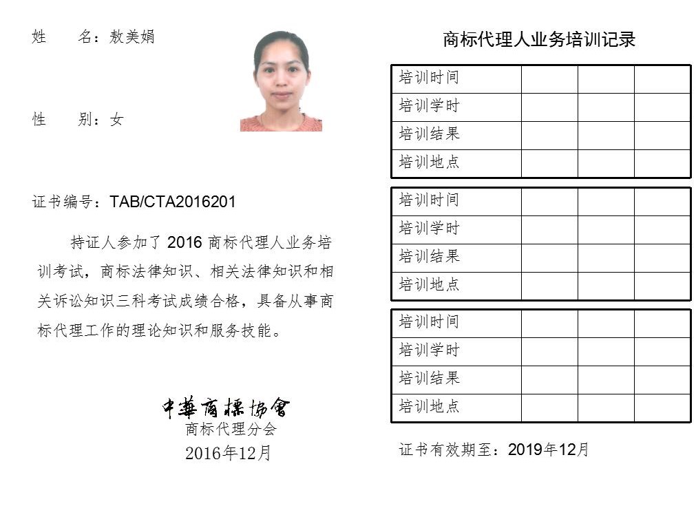 首页 > 代理分会 > 合格证书查询 > 2016年商标代理人业务培训考试合格证书 > 广州市华学知识产权代理有限公司