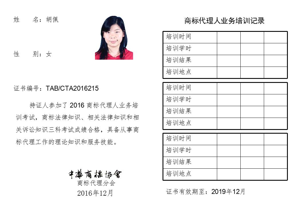 首页 > 代理分会 > 合格证书查询 > 2016年商标代理人业务培训考试合格证书 > 湖州金卫知识产权代理事务所(普通合伙)