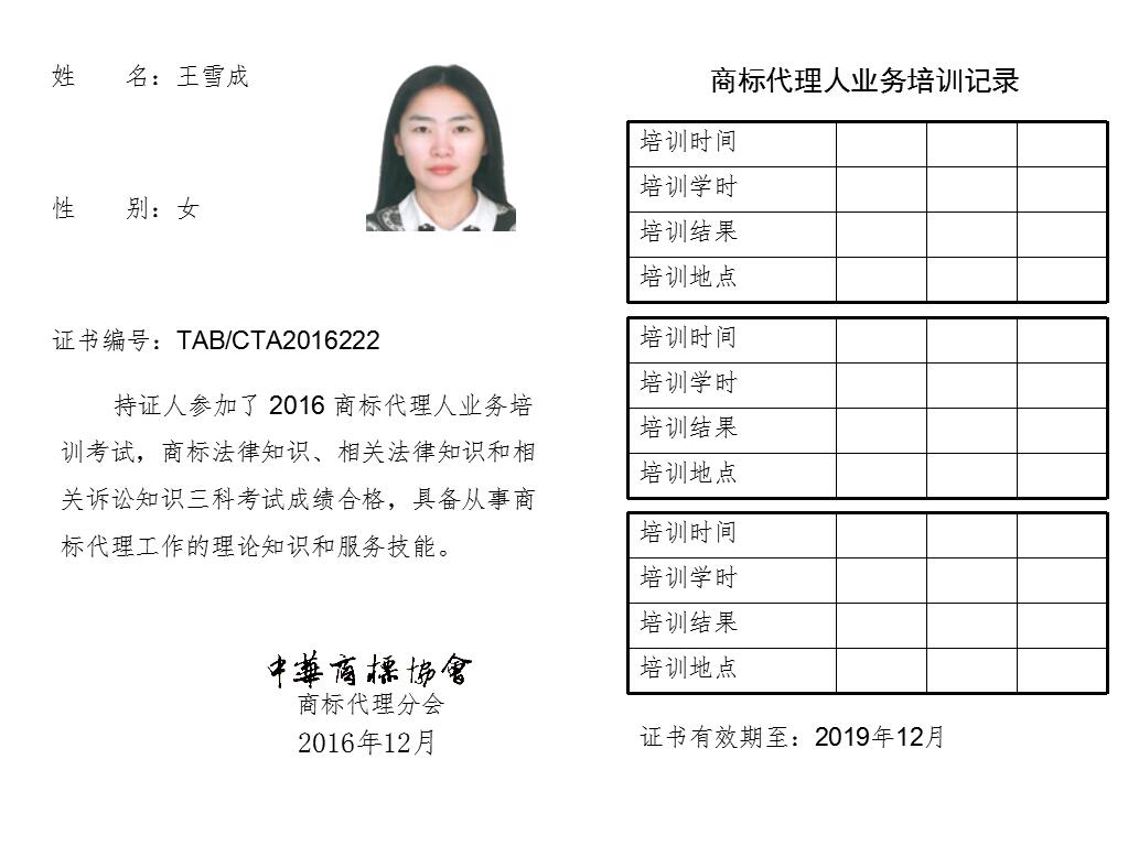 首页 > 代理分会 > 合格证书查询 > 2016年商标代理人业务培训考试合格证书 > 立方联合(北京)商标事务所有限公司