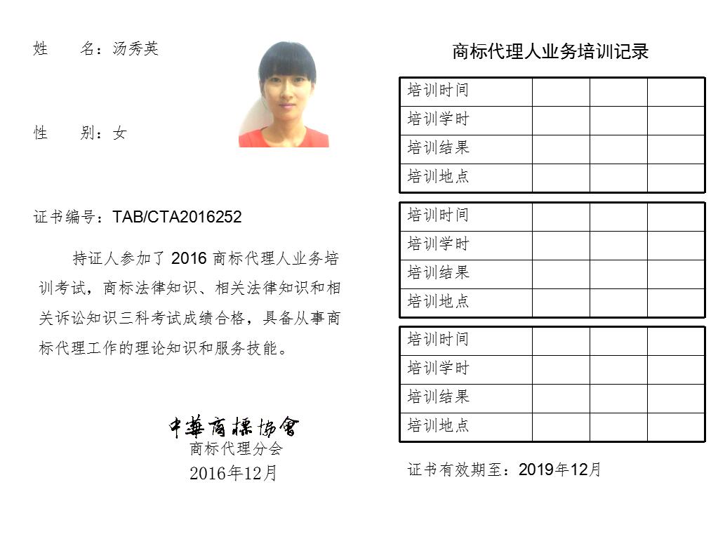 首页 > 代理分会 > 合格证书查询 > 2016年商标代理人业务培训考试合格证书 > 四川虹桥知识产权服务有限公司