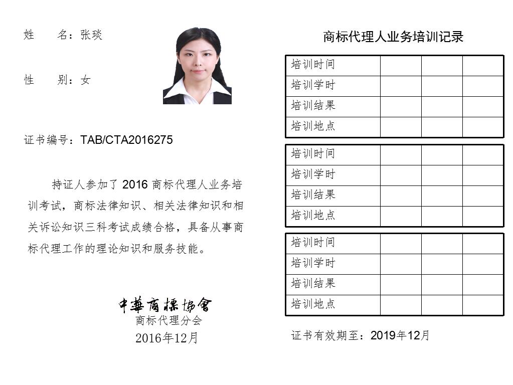 首页 > 代理分会 > 合格证书查询 > 2016年商标代理人业务培训考试合格证书 > 永新专利商标代理有限公司