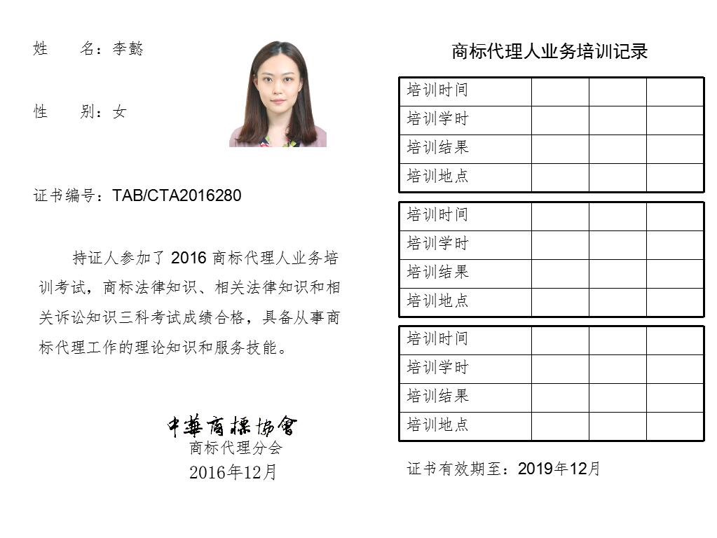 首页 > 代理分会 > 合格证书查询 > 2016年商标代理人业务培训考试合格证书 > 永新专利商标代理有限公司