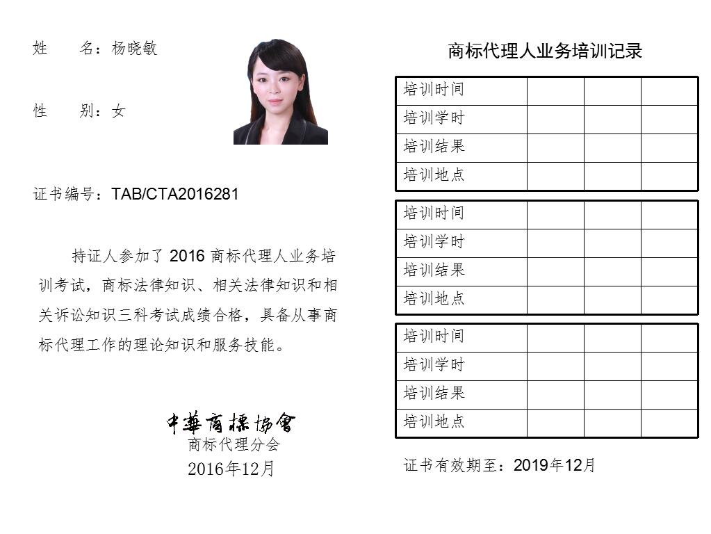 首页 > 代理分会 > 合格证书查询 > 2016年商标代理人业务培训考试合格证书 > 永新专利商标代理有限公司