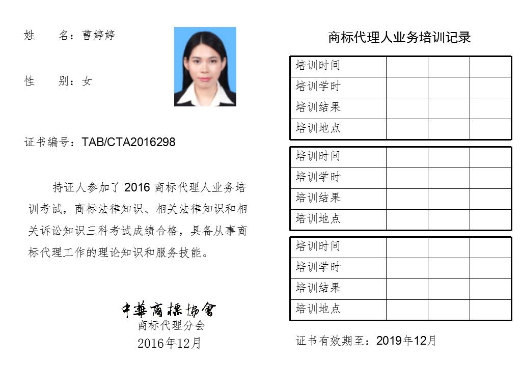 首页 > 代理分会 > 合格证书查询 > 2016年商标代理人业务培训考试合格证书 > 中珍银华(北京)知识产权代理有限公司