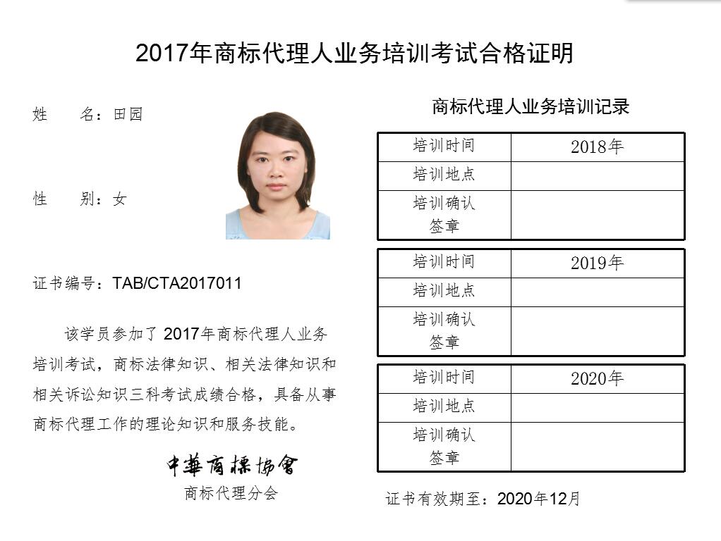 首页 > 代理分会 > 合格证书查询 > 2017年商标代理人业务培训考试合格证书 > 北京黄金智慧知识产权代理有限公司
